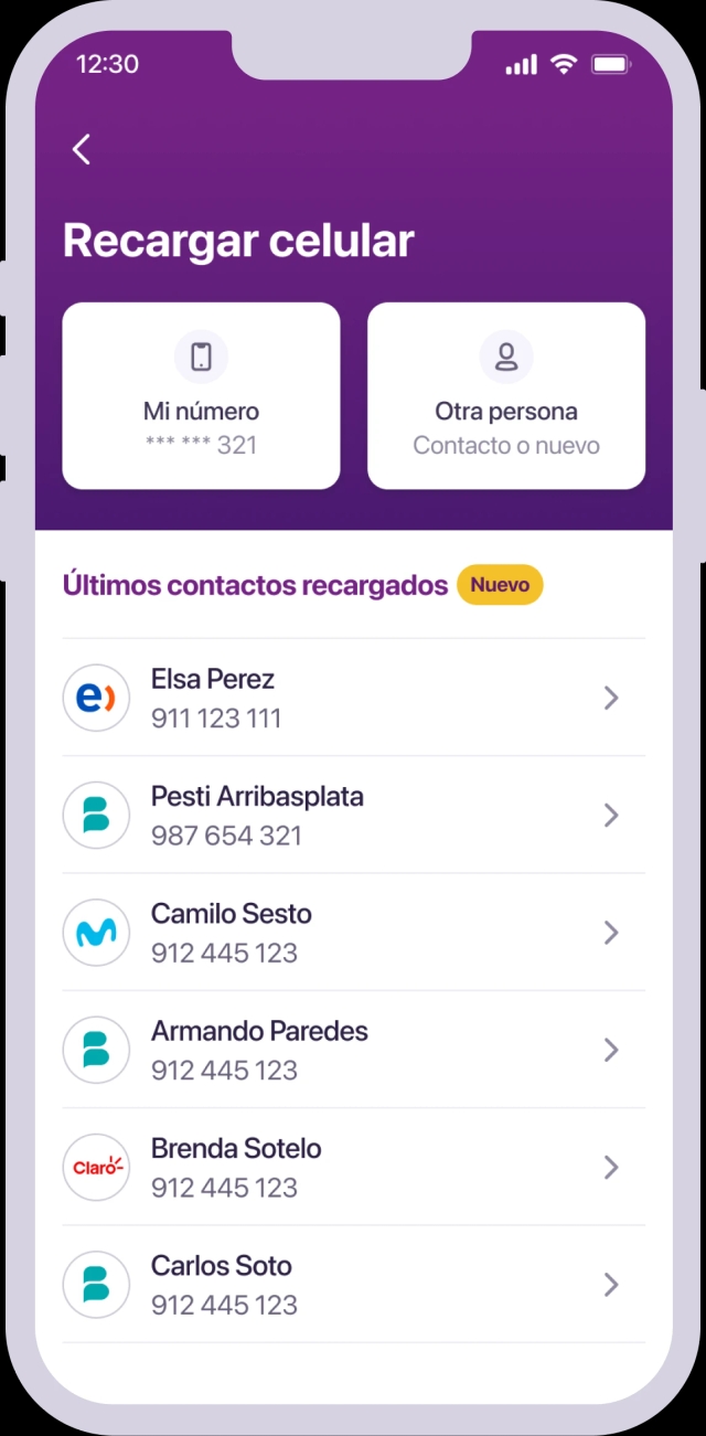 Sólo los Yape con BCP y Yape con DNI pueden hacer recargas de celular desde Yape.